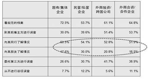 不同类型企业对职业经理人进行背景调查的方式
