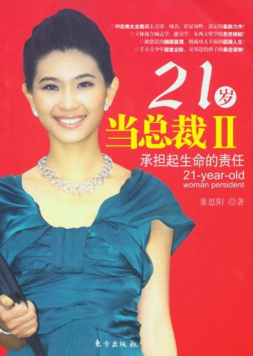 【序一】绚丽的人生蒋锡培/文 在我的眼里,董思阳是一个颇有点精神的年轻人。我说她有精神,是说她总是能呈现出一种积极、向上、乐观、豪爽的状态。这种精神状态,让她拥有了远超越于自身年龄的智慧。每次见到思阳,都会感受到一股火一般的热情。她勤奋、努力、敢于担当、永不服输。更让人感动的是,她还很有责任感和爱心,这从她不断写书分享自己的人生感悟以及毫无保留地将100万元版税捐给“关心下一代大学生发展基金”就可窥见一斑。最近,我有机会先睹了她的新书《承担起生命的责任》,更加欣赏董思阳的才华与思想境界。与她的第一本书《21岁当总裁》相比,这本书在表达方式上更加优美、洗练,很多理论的分析更有深度,实用性也更强。书中充满智慧和启迪的语言非常多。从“人生幸福”到“拥抱自信”,从“让生命时刻充满美好能量”到“口才训练”、“外在形象的塑造”以及“成功气质”的修炼,董思阳为大家系统地解读了一个人应该怎样“承担起生命的责任”。生活就像一面镜子,我们身外的一切总会折射出我们的内心。内心丰富,外在贫即富;内心贫穷,外在富即贫。董思阳是一个内外皆富、内外兼修的青年,我真诚地欣赏她、祝福她,同时也祝福更多的中国青年,内外兼修,活出精彩绚丽的人生。(作者系远东控股集团有限公司党委书记、董事局主席)