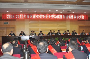 4月29日,2009—2010年度河南省省管企业劳动模范和先进集体表彰大会在省人民会堂召开,来自省管企业的60名劳动模范和40个先进集体受到表彰。河南省副省长陈雪枫,省政府国资委党委书记、省委组织部副部长申振君,省总工会副主席马露霞等领导出席会议并讲话,省国资委主任肖新明主持会议,副主任赵文明宣读了表彰决定。(杨鹏飞)