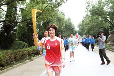 陈爱莲再传圣火八届全国残运会火炬传递启程,万丰奥特董事局主席陈爱莲传递企业第一棒