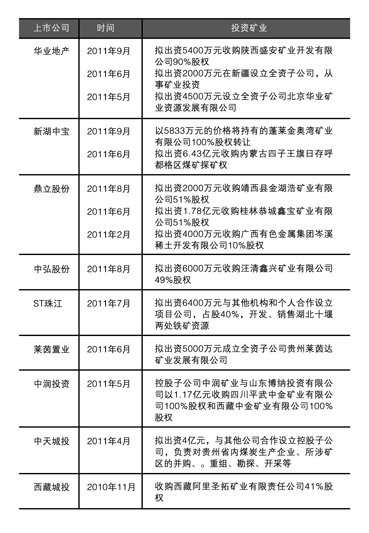 面对严峻的市场形势和对后市的不确定,自去年以来,一些上市房企开始进军矿业寻找“宝藏”,加入了由经营地产转向矿产领域的队伍。