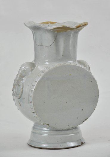 宋末元初,青白瓷的生产中心仍在江西景德镇。元代青白瓷的胎釉特征与宋代有所不同:瓷胎采用高岭土加瓷土的二元配方法,胎土中氧化铝的含量增加,烧成温度更高,胎质更白,器物很少变形。釉为石灰———碱釉,即在釉料中掺入适量的草木灰,使釉中含有碱金属钾和钠。鼓型青瓷,是属于宋末元初的作品。宋末元初的青白瓷基本继承了宋代青白瓷的基因,瓷胎采用瓷土的一元配方,胎土中氧化铝的含量低加,烧成温度不高,胎质灰,器物容易变形。釉为石灰釉,烧成后釉面失透,光泽柔和,釉色略灰,玉质感强。器物造型除碗、盘、瓶、炉、罐、枕外,还新出现了扁型执壶、葫芦型执壶、多棱壶、鼓型瓶、动物形砚滴等。造型特点是厚重饱满,器物胎壁厚,显得釉层较薄。