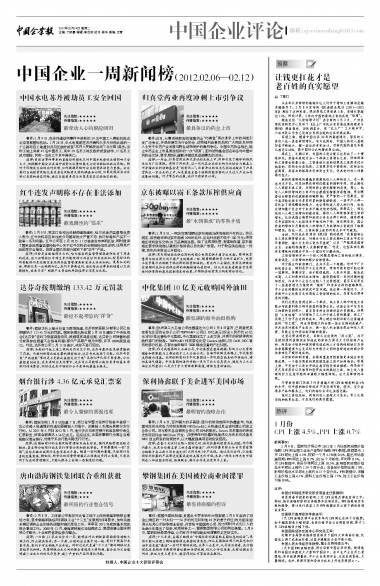 版权声明:《中国企业报》刊发的所有作品,版权均属于中国企业报社。未经报社书面授权,任何单位及个人不得将《中国企业报》刊发的内容用于商业用途。如进行转载、摘编,必须在报社书面授权范围内使用,并注明作品来源"中国企业报"以及相关作者信息。