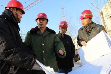 李志远(左二)在工地指导工作