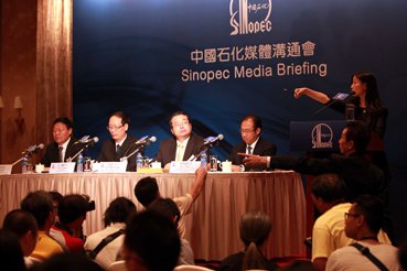 8月9日,中石化管理层在香港召开记者会,宣布拨款一千万元协助聚丙烯的打捞及清理工作。CNS供图