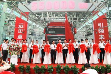 欧曼第55万台搭载OM457奔驰发动机的GTL重卡下线剪彩