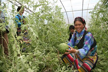 然而,就是这片高原极寒之地,几年前,在中国中化集团公司(以下简称“中化集团”)的帮助下,矗立起几十座蔬菜大棚,种上了青菜、青椒、黄瓜、西红柿等,甚至还有皮薄瓤甜的西瓜!学会了用温室大棚种菜的当地藏民,正走上致富的道路。