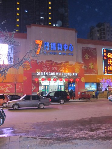 走出老周的店,走上北票的街,看到的又是另一番景象:川流不息的车辆,热情采购的市民。仔细一瞧,原来是两家大型超市。一家是已经经营多年的本地超市———七门超市,还有一家是去年年末刚刚进驻北票的外地超市———商业城连锁超市。