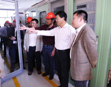 贵州电网公司总经理唐斯庆在南郊变电站二次保护屏前了解运行情况
