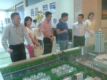 玉林团委书记陈天宁(右二)考察博白县亮亮集团创业项目