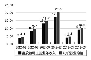 丝绸行业第一股嘉欣丝绸与行业平均值对比(单位:亿元)王利博制图