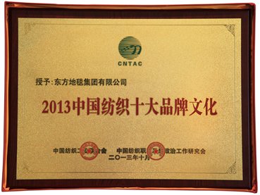 东方地毯荣膺“2013中国纺织十大品牌文化”企业