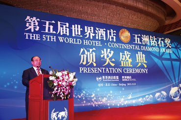 东方地毯集团有限公司销售总监何永玉在第五届世界酒店五洲钻石奖颁奖盛典上演讲