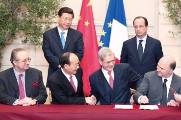 中国国家主席习近平、法国总统弗朗索瓦·奥朗德共同出席签字仪式。