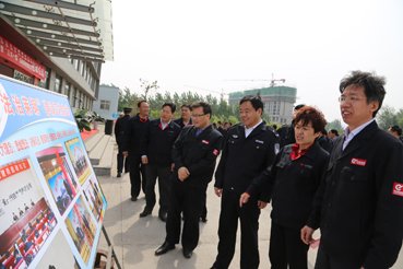 莱钢集团总法律顾问董立志(右一)视察公司检修中心践行“法治莱钢”的做法和成效