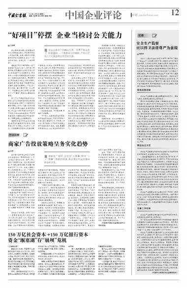 版权声明:《中国企业报》刊发的所有作品,版权均属于中国企业报社。未经报社书面授权,任何单位及个人不得将《中国企业报》刊发的内容用于商业用途。如进行转载、摘编,必须在报社书面授权范围内使用,并注明作品来源"中国企业报"以及相关作者信息。