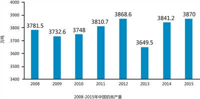据最新发布的《中国奶业质量报告》数据显示,2015年我国奶类总产量达到3870万吨,居世界第三位,仅次于印度和美国;人均奶类消费量36.1公斤,比2008年增加5.9公斤,综合生产能力持续发力、稳步提升。