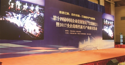 以“走进江阴、合作共赢,打造战略性新兴产业高地”为主题的第十四届中国企业发展论坛(江阴峰会)暨2017央企战略性新兴产业研讨会,2017年7月8日在江苏省江阴市举办。全国政协常委、全国政协经济委员会副主任、国家工业和信息化部原部长李毅中,中国企联常务副会长兼理事长朱宏任,中国企联副理事长于武,《中国企业报》集团总裁、社长吴昀国,无锡市委常委、江阴市委书记陈金虎,机械工业经济管理研究院院长徐东华,中国石油投资集团有限公司董事局主席邵辉,北京神洲天才科技发展有限公司董事长迟运发等,同来自中国石化、中国人寿、中国电科、中国诚通等30余家央企国企代表,以及各地共约150名企业家、投资商以及多家智库代表,就战略性新兴产业的发展现状和实施路径,提建议、开方子。