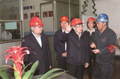 | 贵州省企联会长武鸿麟(前排中)一行到企业调研 |