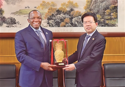 | 几内亚总统特使访问陕建集团,并与集团党委书记、董事长、总经理张义光互赠礼物。 |