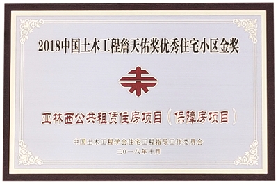 2018年11月1日,“2018中国土木工程詹天佑奖优秀住宅小区技术交流会暨颁奖仪式”在北京举行,中建八局承建的亚林西公共租赁住房项目从全国众多优秀项目中脱颖而出,荣获“詹天佑奖优秀住宅小区金奖”。