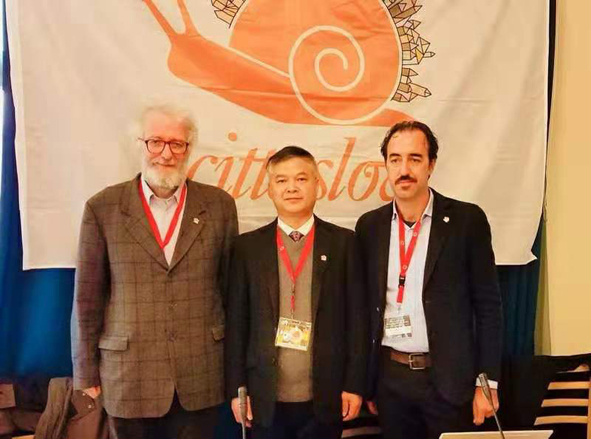 | 图为常山县委书记叶美峰与国际慢城联盟主席皮萨尼(左)、秘书长皮尔(右)合影 |