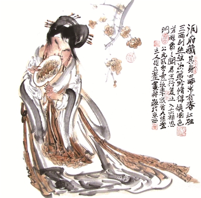 我认为张立奎的古典人物画很有创意,他能够巧妙地把西方绘画优秀的造型技巧融入到传统的以线造型的中国古典人物绘画中,能把当代的院体造型规律融入到当代的文人绘画中,我认为是一个很大的突破,而且效果相当不错。他的笔墨已达到随心所欲的境界,气韵生动,神采飞扬,笔笔到位。作为一个军旅画家,不受现实题材的制约,用无拘无束的狂放之笔画出的画让人惊心动魄,在创新领域为我们提供了一个更广阔的空间。他的画路很宽,画出了很多让我们羡慕的画。 ——刘进安
