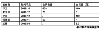 2019年10月16日,华为5G产品线总裁杨超斌表示,华为目前为止在全球已签署了60多份5G商用合同,发货5G基站超过40万站。