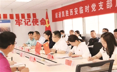 “在公司新建项目成立临时党支部,将党旗插在项目一线工地上”,是诚通凯胜党支部的创新探索。2020年6月,西安项目部临时党支部成立,并与项目所在地安新县老河头镇政府、雄县北沙口乡政府、米家务镇政府建立“政企共建”对接关系。临时党支部成立后,积极开展党建工作,确保了工作有方向、工程有指挥、项目有指引、管理有指导。支部书记胡令勇表示:“党组织让团队凝聚力不断加强,引领全体党员时刻担当使命、处处冲在一线。”