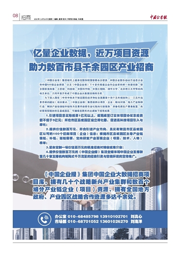 版权声明:《中国企业报》刊发的所有作品,版权均属于中国企业报社。未经报社书面授权,任何单位及个人不得将《中国企业报》刊发的内容用于商业用途。如进行转载、摘编,必须在报社书面授权范围内使用,并注明作品来源"中国企业报"以及相关作者信息。