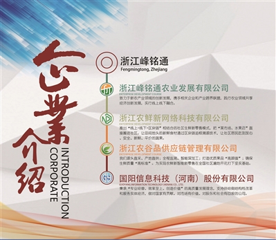 浙江峰铭通集团致力于新农产业领域的创新发展,携手相关企业和产业跨界联盟,践行农业领域共享经济创新发展,公司以“扶贫兴农,惠泽于民”为使命,实行线上线下融合。公司是立足新零售科技,集研发、生产、营销、运营无人售货机为一体的现代化企业。推出“线上+线下”结合的社区生鲜新零售模式,把“菜市场、水果店”直接搬进社区。让田间地头的新鲜食材通过区块链追根溯源技术,让居民吃到放心、安全、新鲜、平价的蔬果。