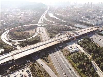 5年蛰伏,温州大道东延终于“舒展双翼”,伴随的是克难攻坚、决战决胜的铿锵士气。短短800米的隧道,为了保工期,将实行双向对打;东延线真正的施工难点,更在跨甬台温高速互通施工,场地狭小,运输受限,无法多设备同时作业,推进速度受限;更棘手的是,互通区交通量巨大,不能封道,只能在车流密布的高速公路上空作业,为确保运行车辆安全,项目部与设计单位反复比选,最终采用了工艺复杂但安全性更好的钢箱梁步履式顶推法。