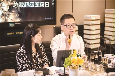 | 林清轩董事长孙来春带头直播卖货 |