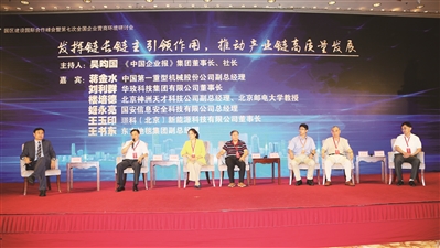 第七届“一带一路”园区建设国际合作峰会暨第七次全国企业营商环境研讨会7月24日在京举行。在主题为“发挥链长链主引领作用,推动产业链高质量发展”的高端对话环节,中国第一重型机械股份公司副总经理蒋金水,华玫科技集团有限公司董事长刘利群,北京神洲天才科技发展有限公司副总经理、北京邮电大学教授楼培德,国安信息安全科技有限公司总经理姬永亮,璟科(北京)新能源科技有限公司董事长王玉印,东方地毯集团副总经理王书东六位产业链链长企业负责人,结合自身所处的产业链,围绕如何更好担当“链长”重任,进行了经验交流与思想碰撞。《中国企业报》集团总裁、社长、企业园区国际合作联盟主席吴昀国主持高端对话。